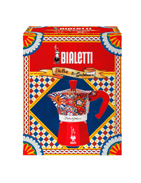 Узор кофеварки вдохновлён традиционной росписью сицилийской повозки, одним из ярчайших символов Сицилии, откуда родом один из основателей модного дома Доменико Дольче. Фольклорные элементы юга Италии всегда были сердцем эстетики Dolce&Gabbana.