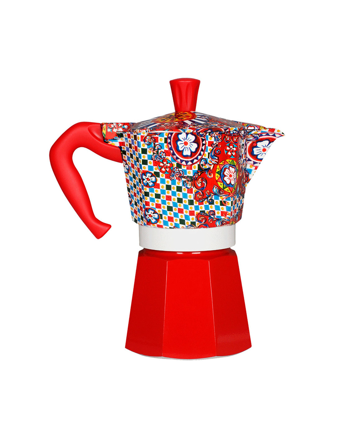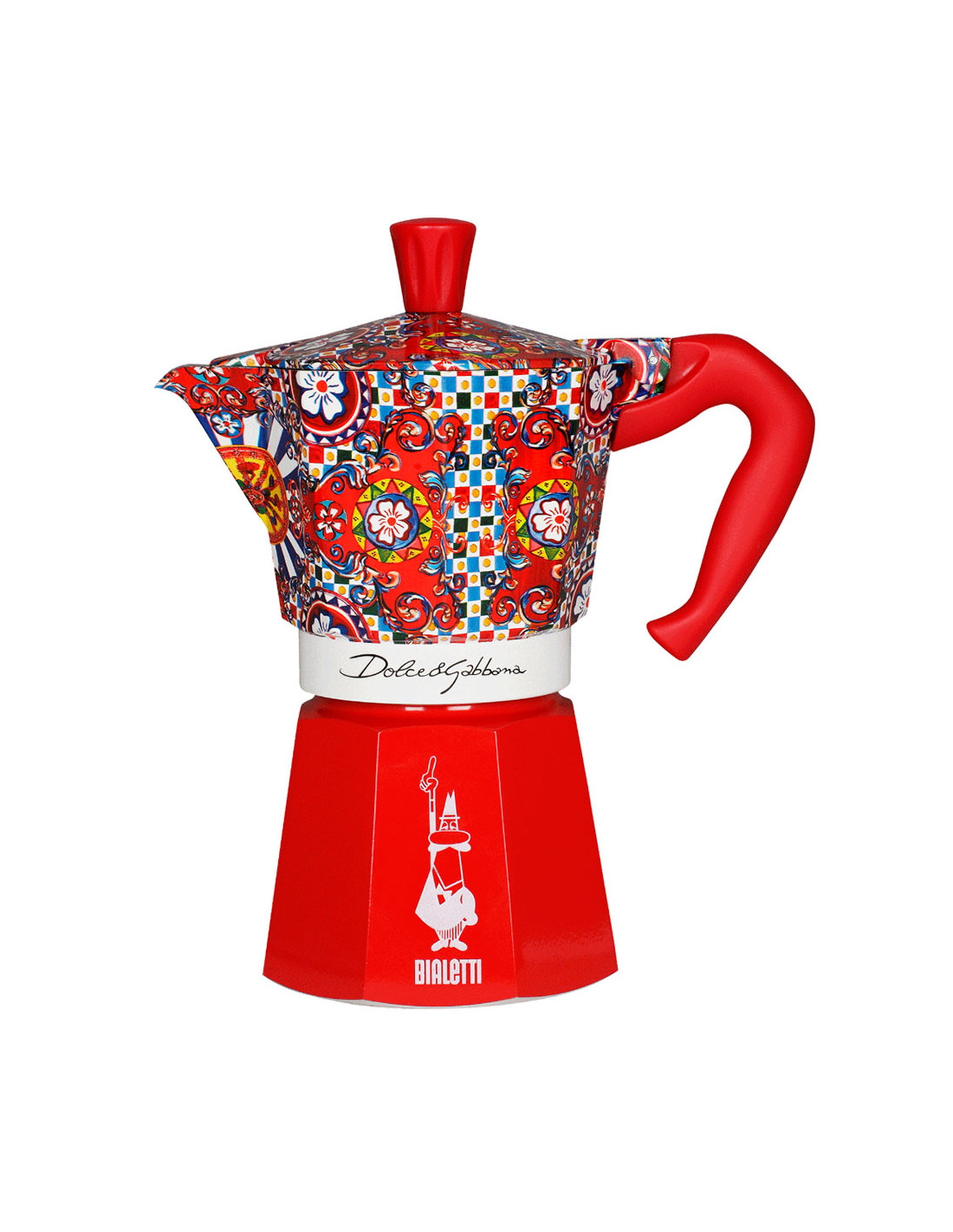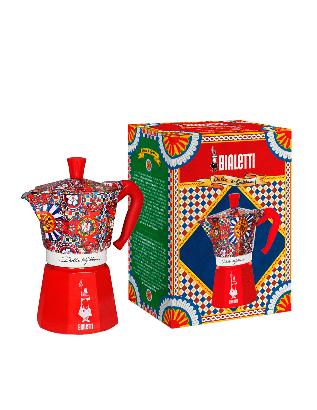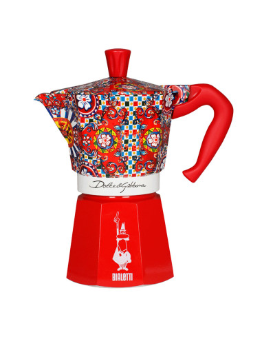 Узор кофеварки вдохновлён традиционной росписью сицилийской повозки, одним из ярчайших символов Сицилии, откуда родом один из основателей модного дома Доменико Дольче. Фольклорные элементы юга Италии всегда были сердцем эстетики Dolce&Gabbana.