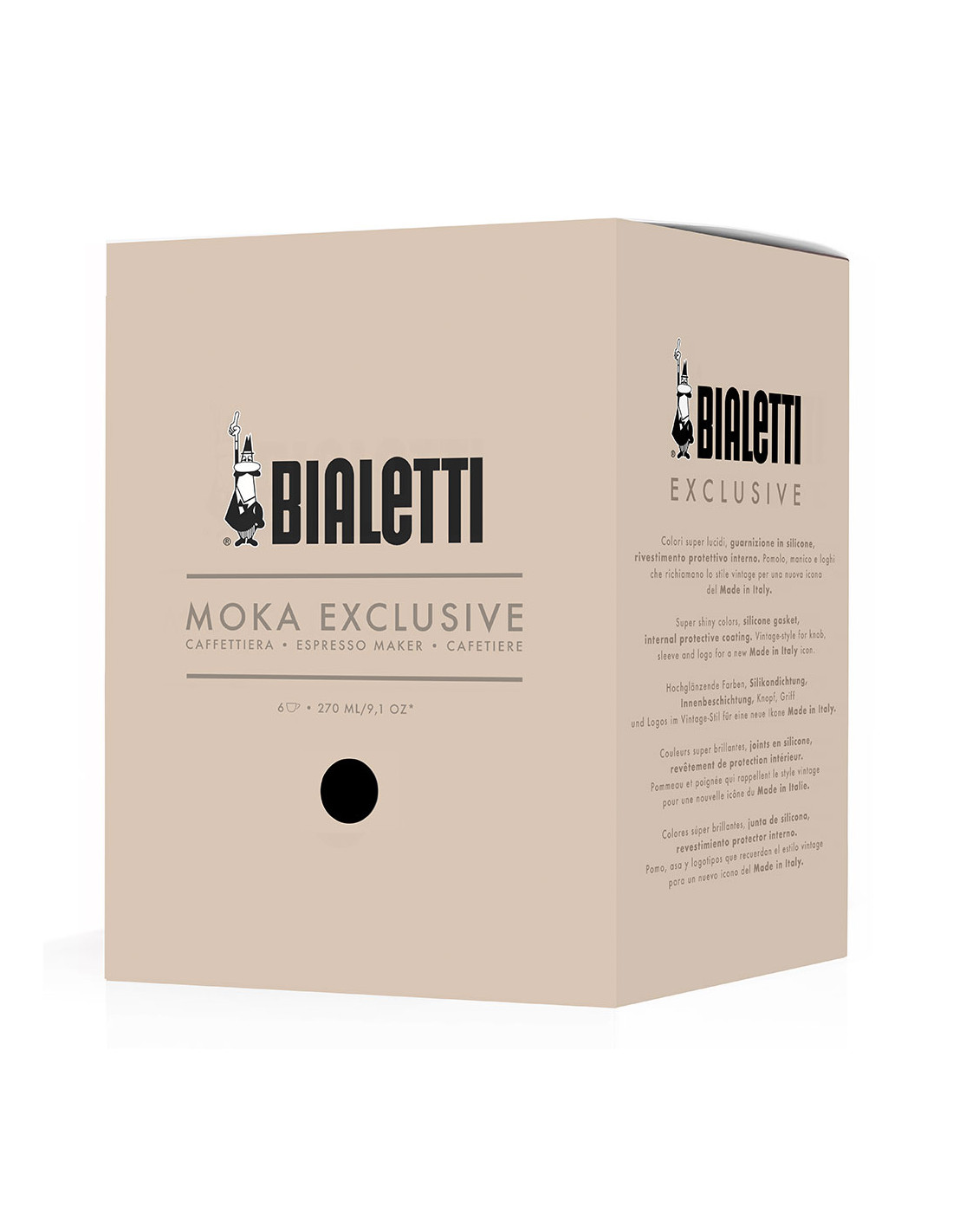 Супер глянцевые цвета, силиконовая прокладка и внутренняя защитная подкладка бойлера. Ромбовидная ручка и рукоятка напоминают о Moka 60-х годов, но при этом выглядят современно и элегантно.