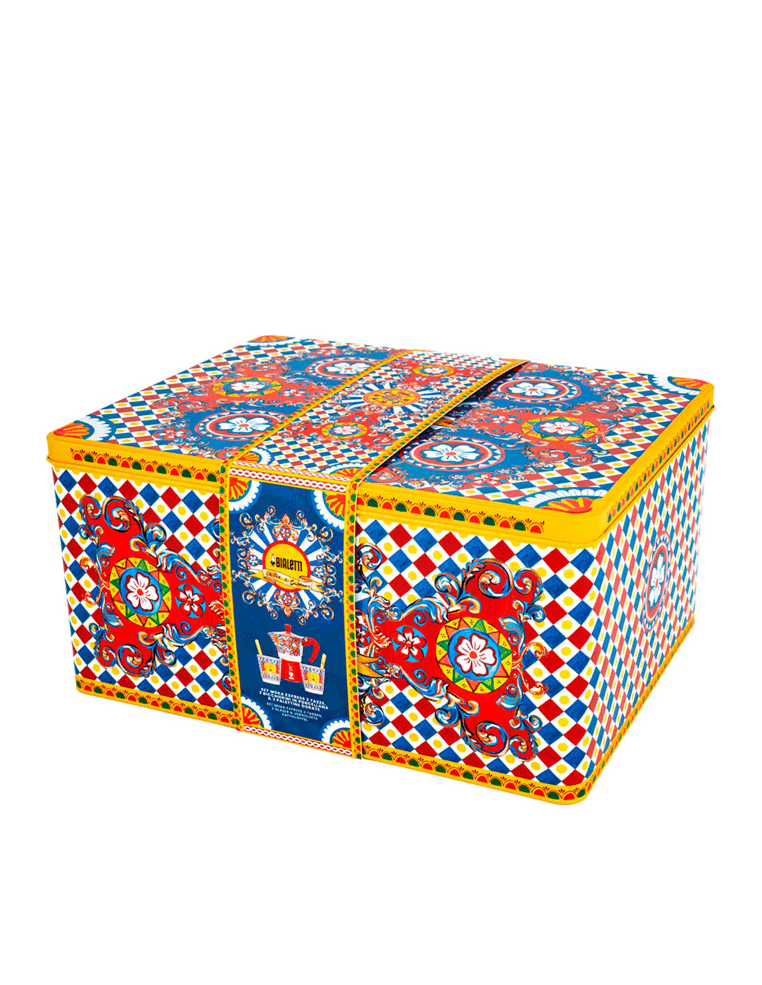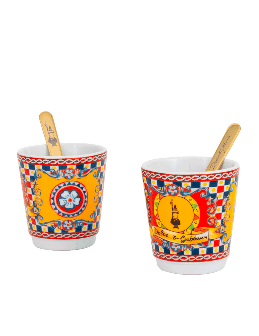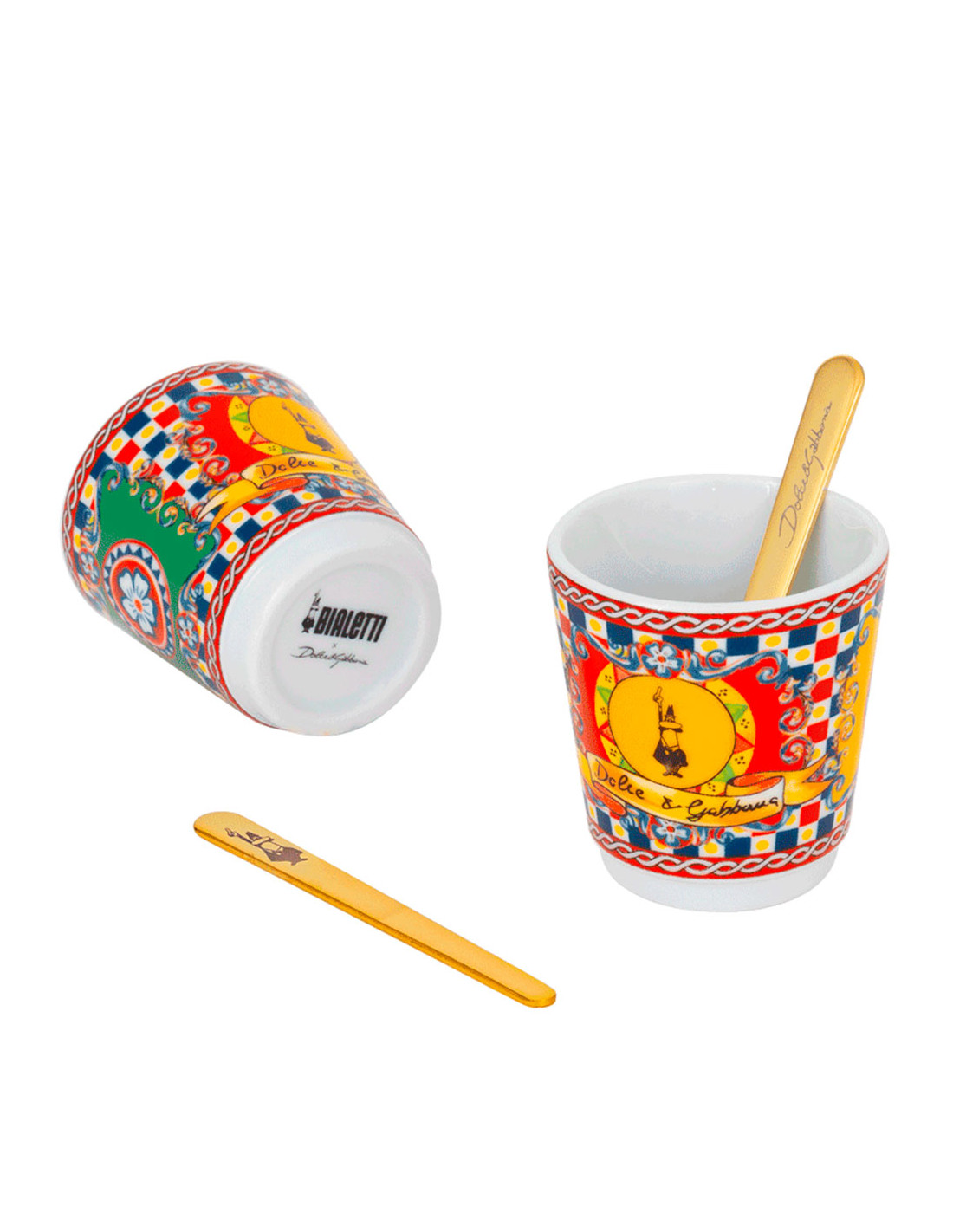 Лимитированный подарочный набор в сицилийском стиле от легенд моды Bialetti Dolce&Gabbana Sicilian Cart с гейзерной кофеваркой и двумя фарфоровыми стаканчиками с коктейльными стиками.