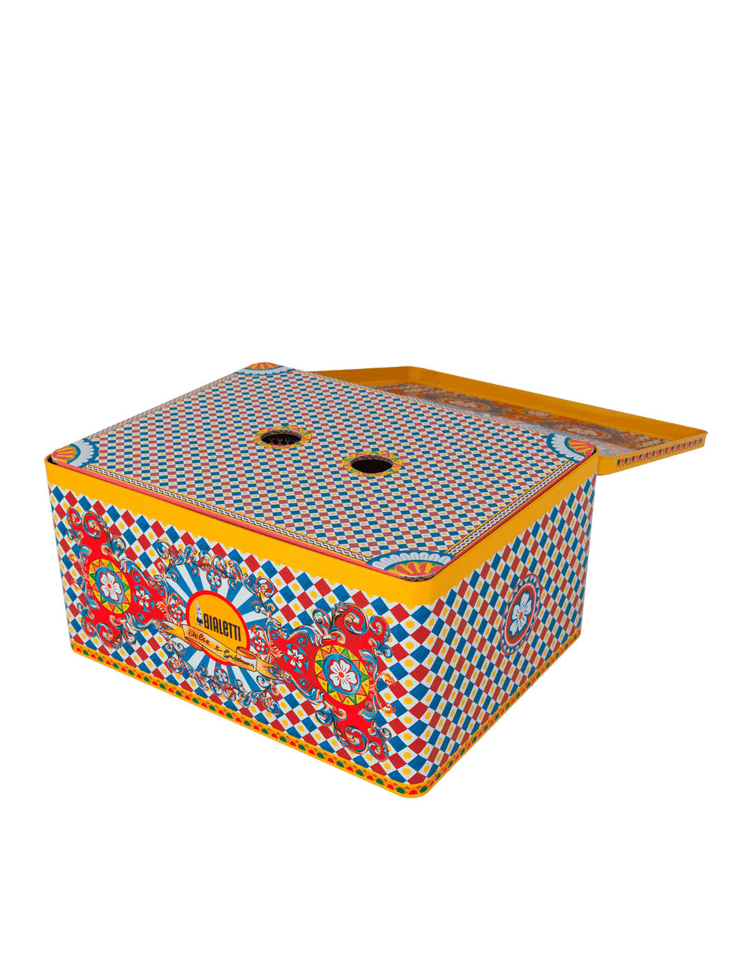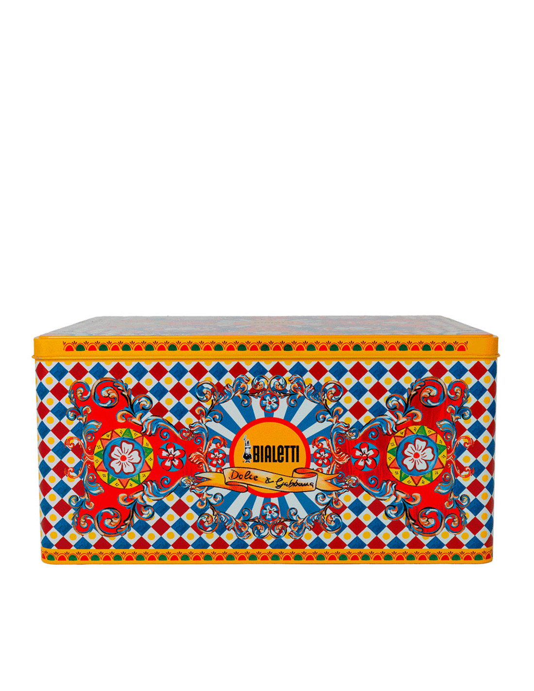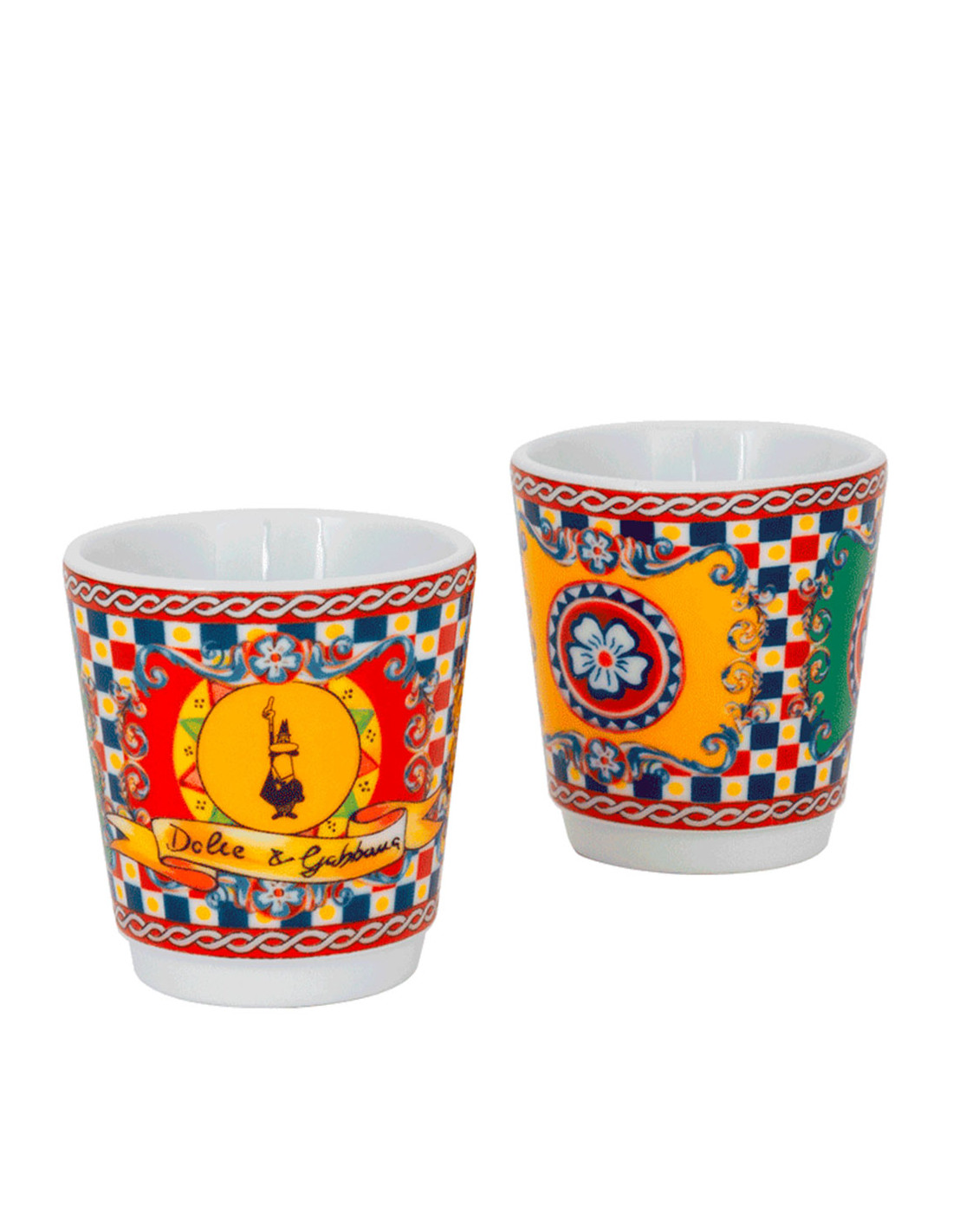 Лимитированный подарочный набор в сицилийском стиле от легенд моды Bialetti Dolce&Gabbana Sicilian Cart с гейзерной кофеваркой и двумя фарфоровыми стаканчиками с коктейльными стиками.