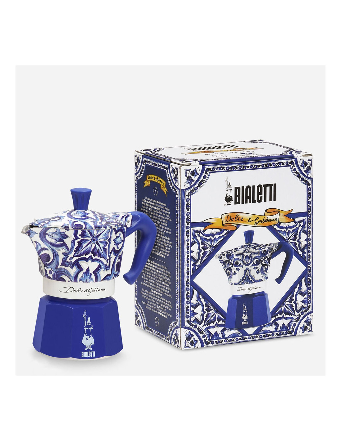 Узор кофеварки вдохновлён традиционной росписью сицилийской повозки, одним из ярчайших символов Сицилии, откуда родом один из основателей модного дома Доменико Дольче. Фольклорные элементы юга Италии всегда были сердцем эстетики Dolce&Gabbana.