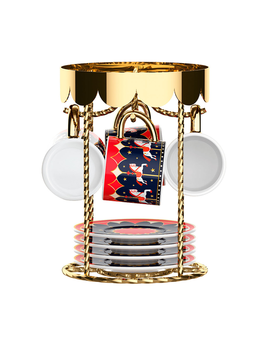 Набор из 4 кофейных пар на элегантной праздничной подставке.
