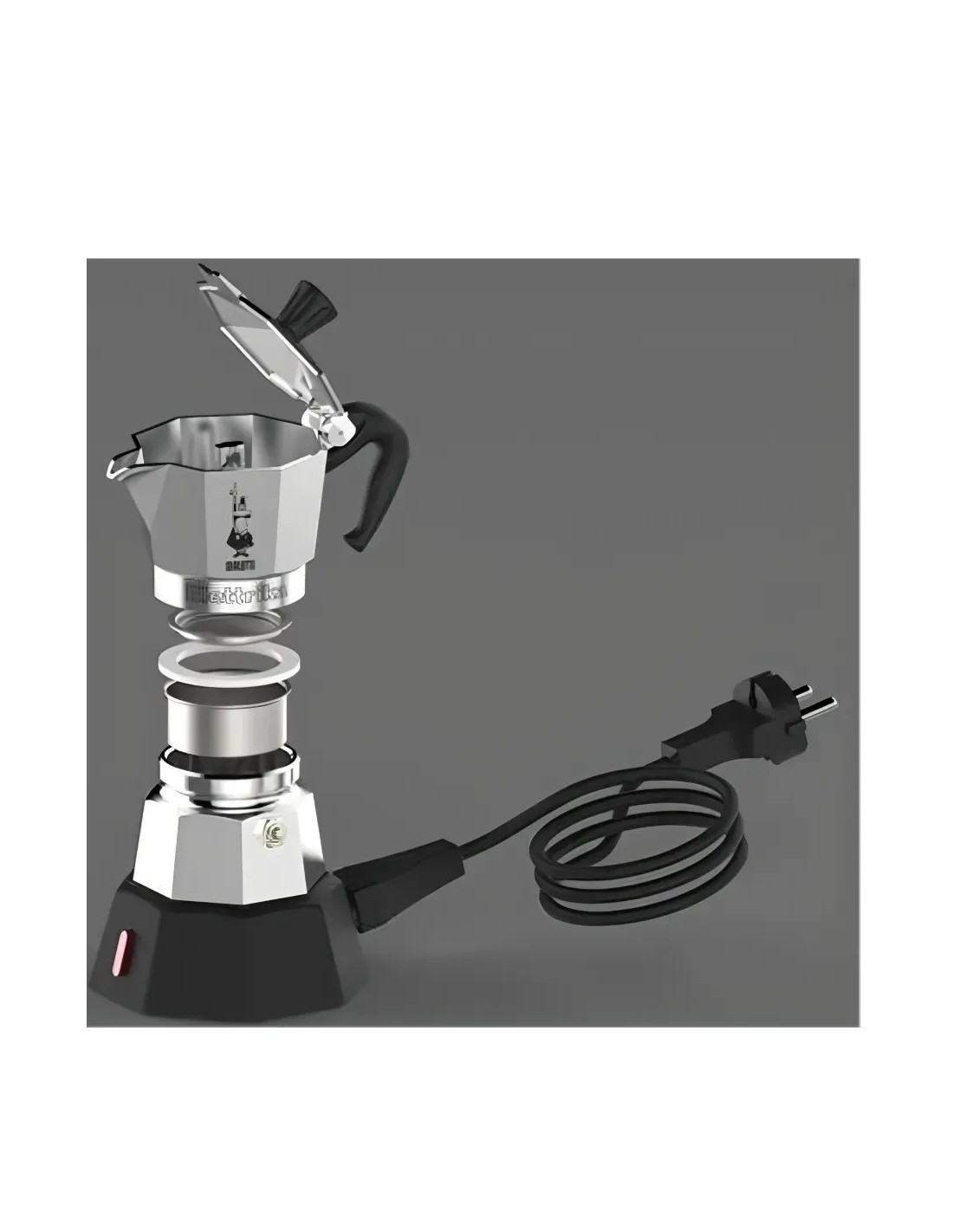 Электрическая гейзерная кофеварка Bialetti Elettrika New 7290 (90 мл) на 2 порции — это современная и удобная версия легендарной Moka Express, созданная специально для тех, кто хочет наслаждаться настоящим итальянским кофе где угодно — дома, в офисе или в путешествии. Модель сочетает фирменную технологию Bialetti с компактным электрическим форматом, не требующим плиты. Корпус выполнен из высококачественного алюминия, обеспечивающего равномерный нагрев и стабильную экстракцию. Классическая двухкамерная конструкция позволяет воде, нагреваясь, подниматься под давлением пара через молотый кофе, наполняя верхний резервуар насыщенным, ароматным напитком с мягкой пенкой.